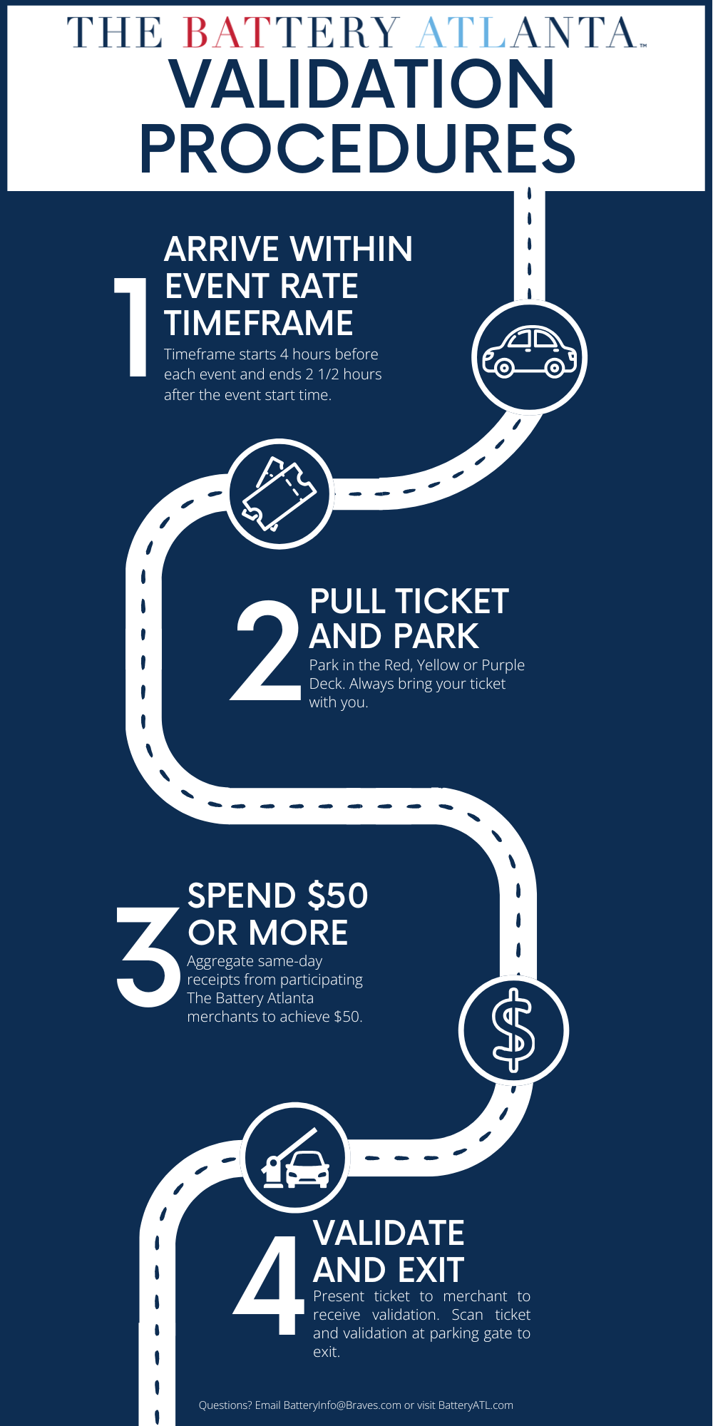 - Spend $50+ at The Battery Atlanta merchants (same-day receipts; excludes ticket or valet purchases).
