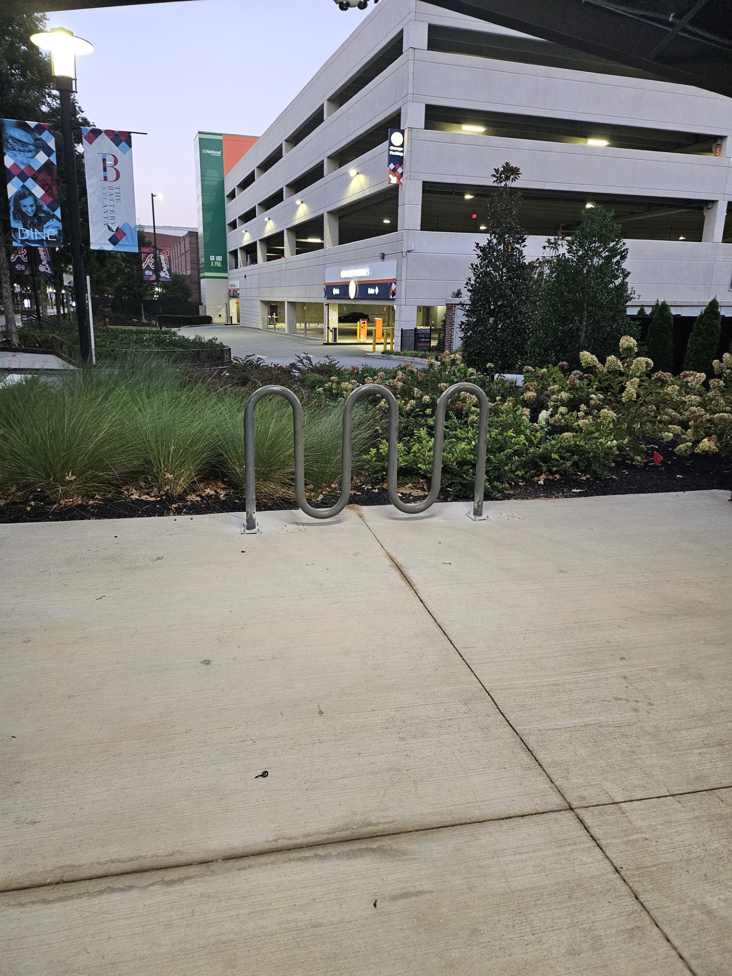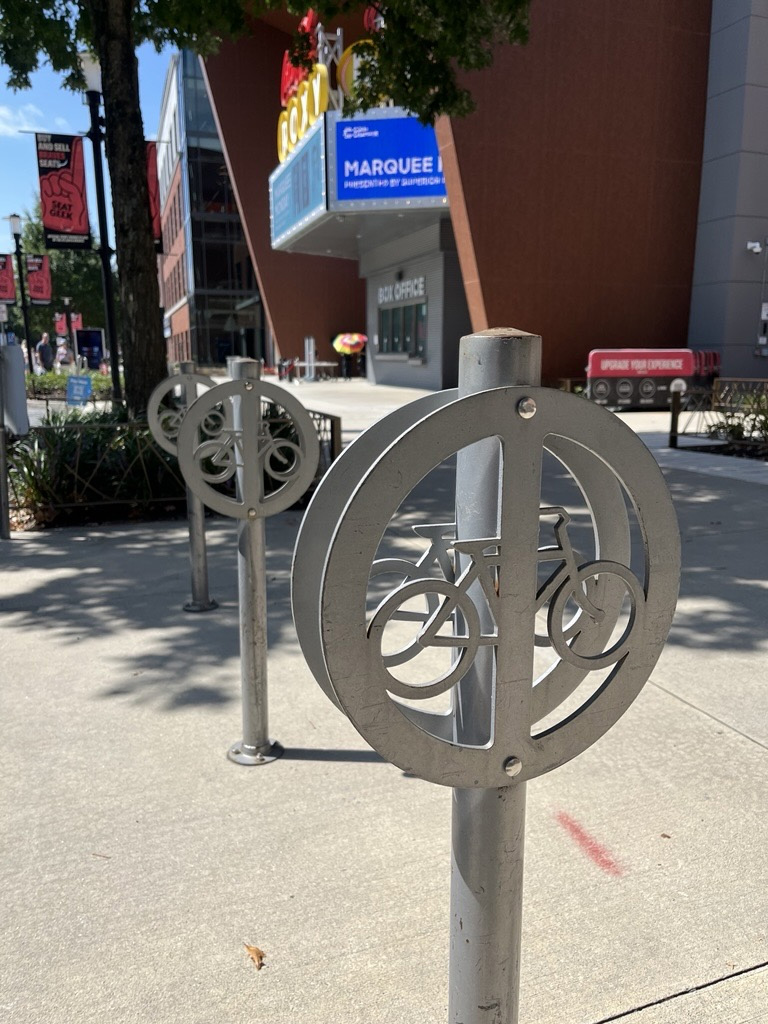 Guests arriving via bicycle can utilize our bicycle parking racks located in front of the Coca-Cola Roxy and outside of the Silver Deck on Circle 75 Parkway as well as on the east/west side of our Binbox Lockers.