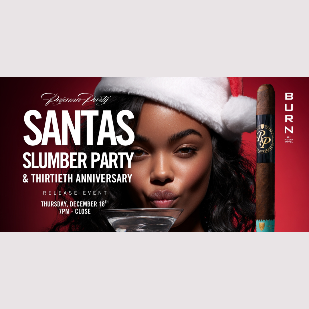 Welcome to Santa’s Slumber Party at BURN Atlanta — happening on Thursday, December 18th at 7 PM — combined with the official Thirtieth Anniversary Cigar Release Party.