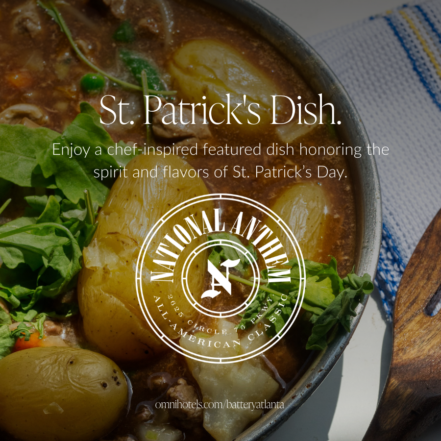Join us for St. Patrick’s Day at National Anthem and enjoy a chef-inspired featured dish with a spirited drink pairing celebrating the flavors and traditions of the holiday.
