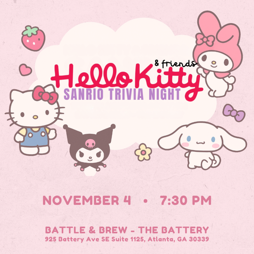 Battle & Brew 925 Battery Ave SE Suite 1125, Atlanta, GA, United StatesGet ready for a night so cute it should come with a sugar warning! 🍰💖 Join Battle & Brew for the Hello Kitty & Friends: Sanrio Trivia Challenge, where friendship, fun, and a sprinkle of nostalgia take center stage. From Hello Kitty and My Melody to Badtz-Maru, Cinnamoroll, and the whole adorable crew, they are […]